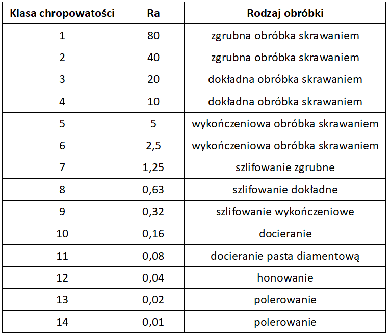 Do określenia jakości szlifowanej powłoki służy parametr Ra. Oznacza średnie arytmetyczne odchylenia profilu od linii średniej. Im jego wartość jest niższa, tym gładsza powierzchnia. W zależności od wartości parametru Ra określa się klasy chropowatości uzyskanej powierzchni.