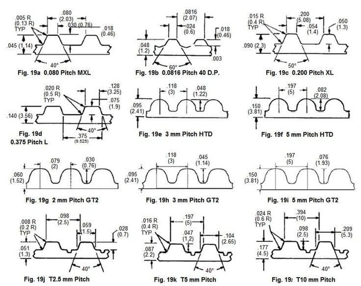Jak wspominałem na początku wpisu, pasy zębate charakteryzują się mnogością kształtów zęba. Jest to też podstawowy rodzaj ich klasyfikacji. Główne typy jakie możemy wyróżnić to: